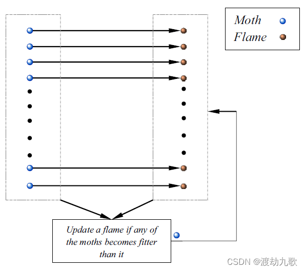下图显示了如何将每个飞蛾分配到火焰列表中的一个火焰上。