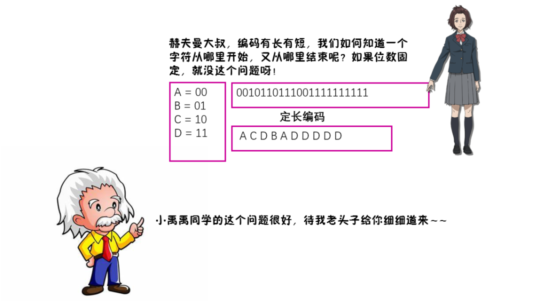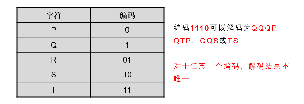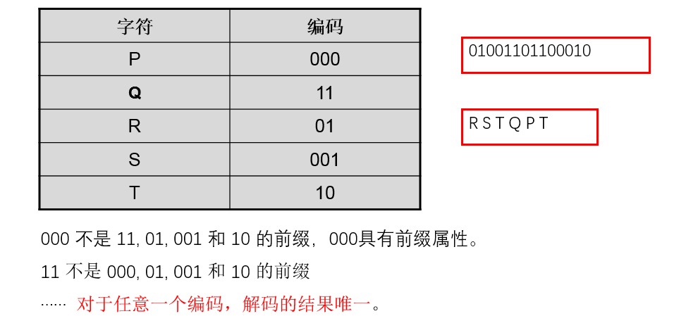 注意:定长编码可以由完整的霍夫曼树表示,并且显然具有前缀属性