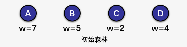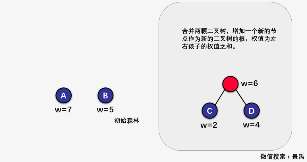 第一步:森林中选择出两颗结点的权值最小的二叉树