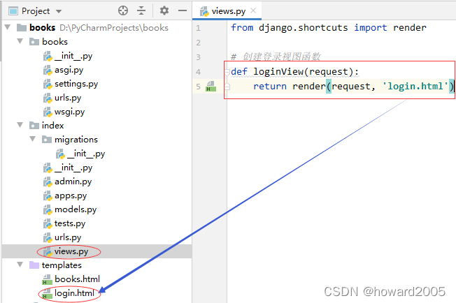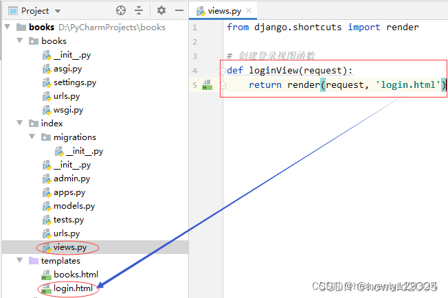 - 在index的views.py里创建loginView视图函数