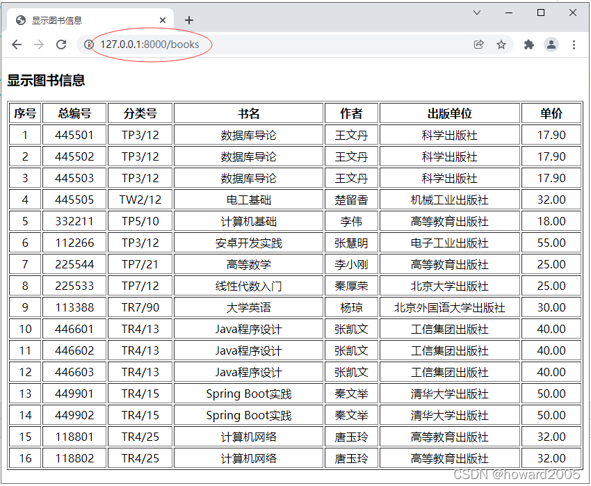 单击【登录】按钮,表格显示全部图书信息