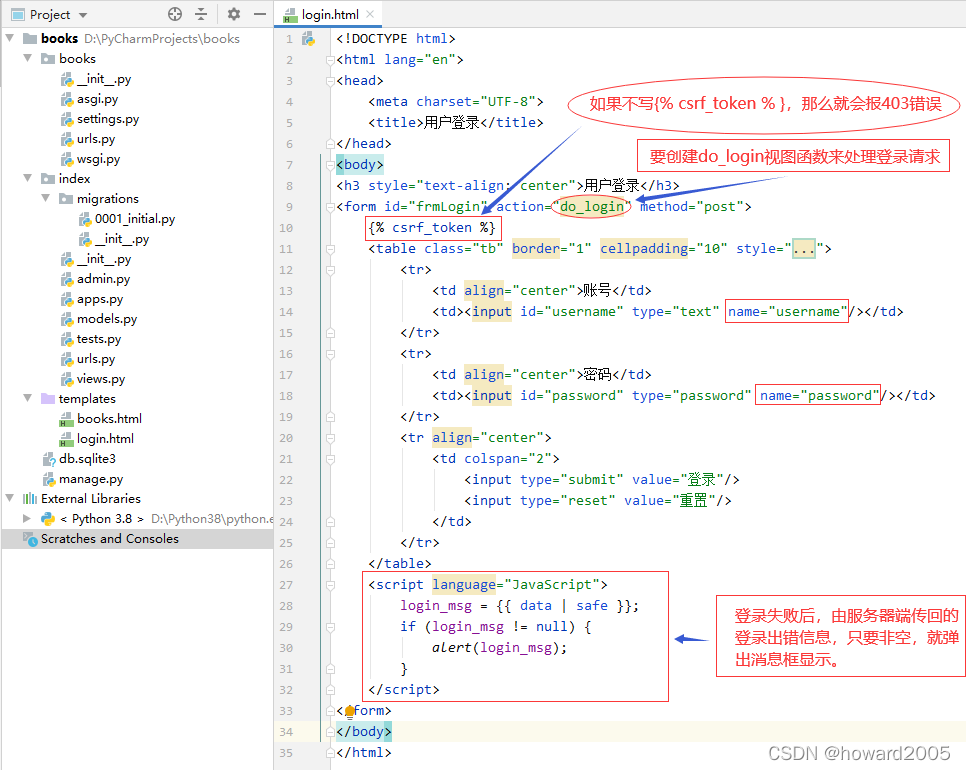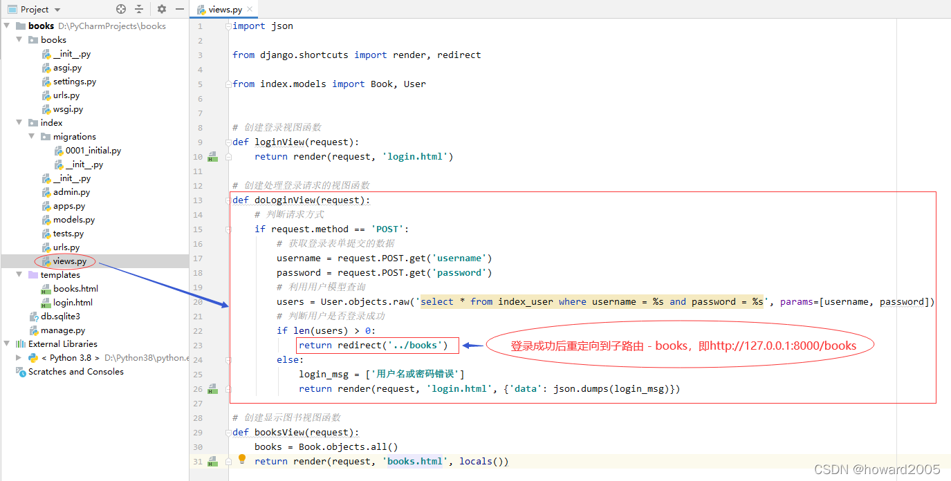 - 在index的views.py里创建doLoginView视图函数