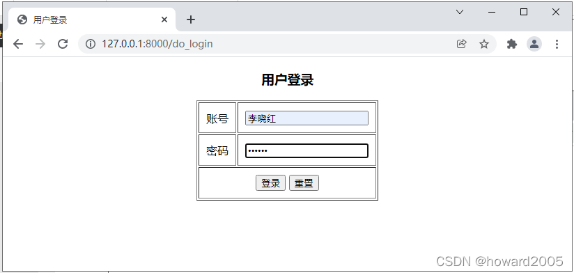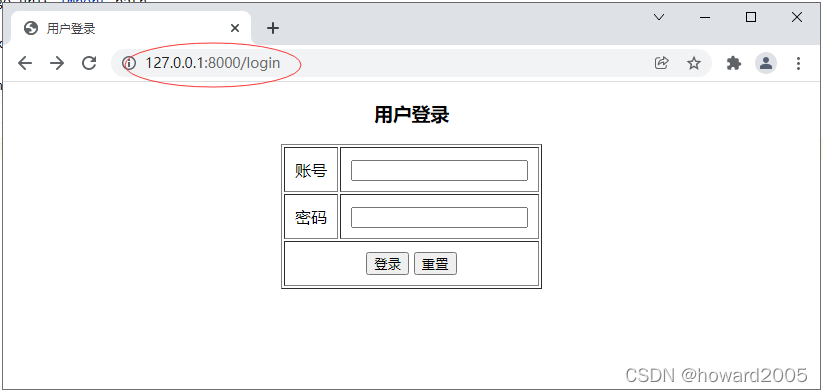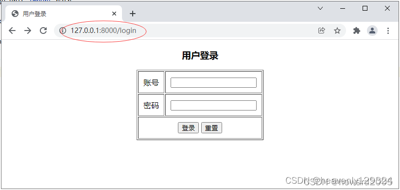 http://127.0.0.1:8000/login,显示登录页面