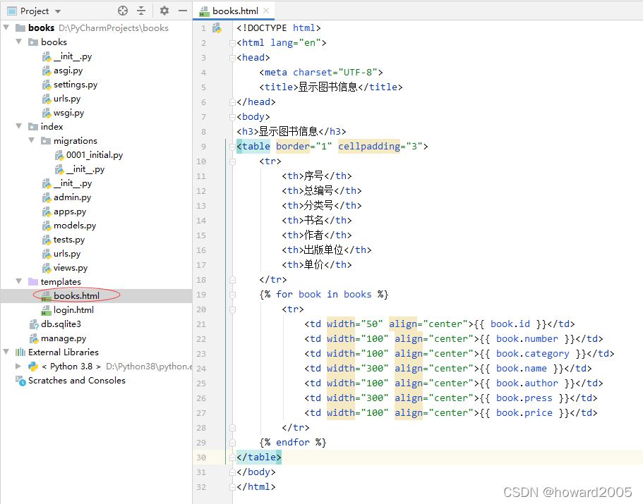 - 在templates文件夹里创建books.html