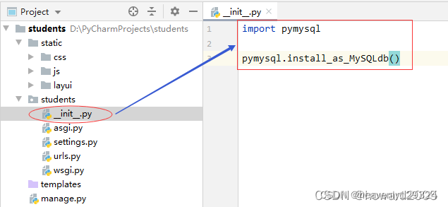 三个视图函数都需要在index的views.py里创建,目前还没有创建,所以会报错,待会儿创建视图函数后,导入一下就可解决这个问题。