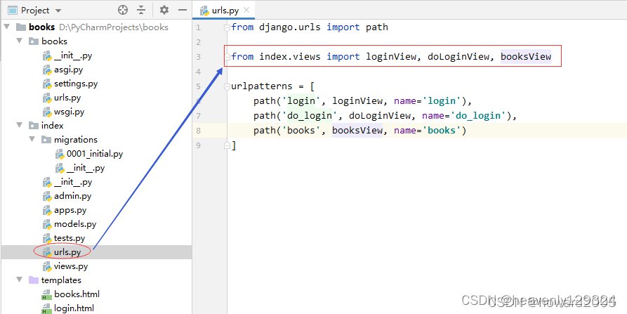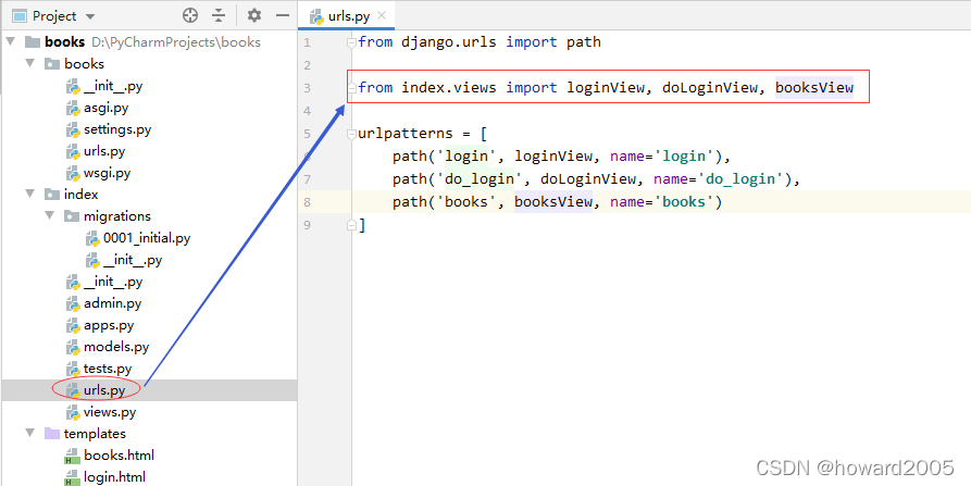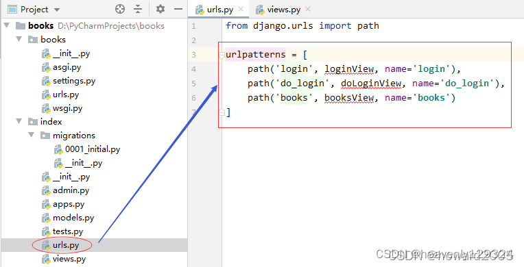 - 导入index.views里的三个视图函数