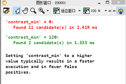 Message := 'Setting \'contrast_min\' to a higher value typically results in a faster execution and in fewer false positives.'