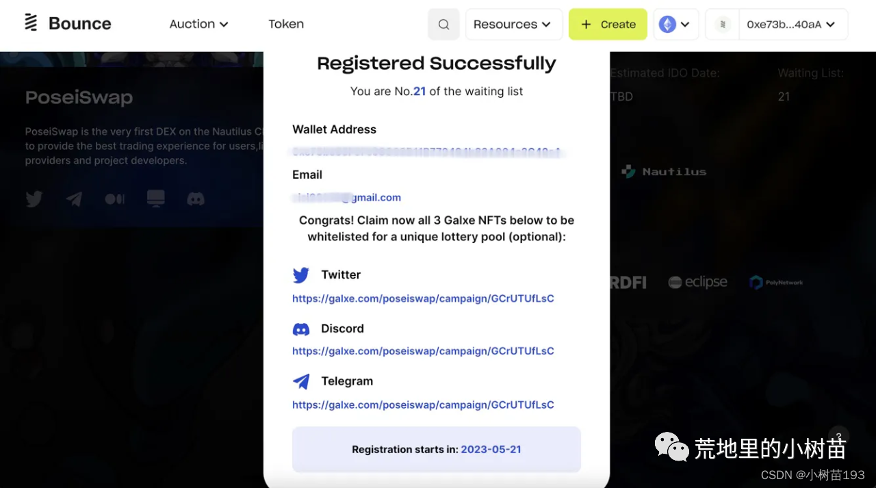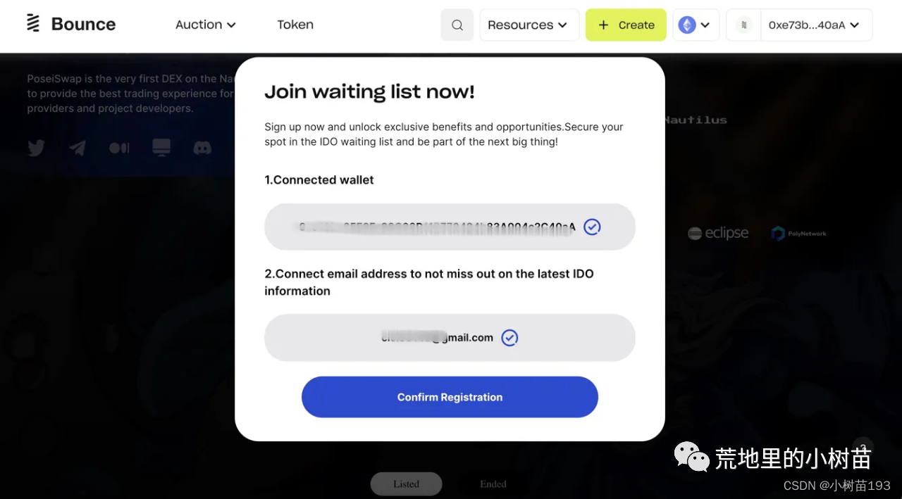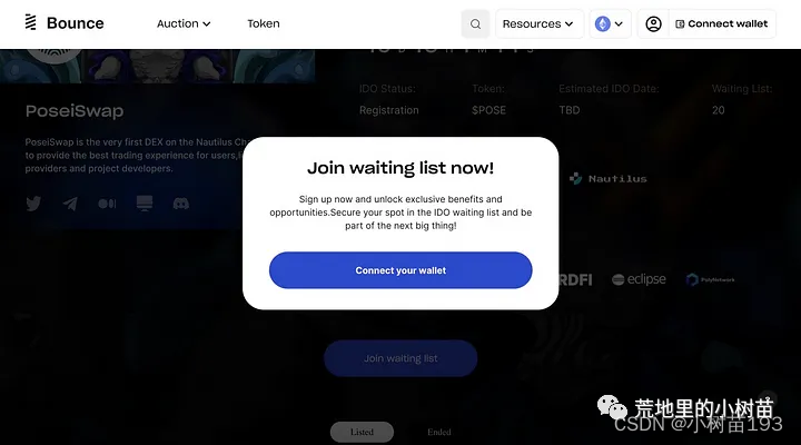 这会将您带回 IDO 页面。现在,点击“Join the Waitlist”时,可以确认注册,然后会弹出一个小窗口,提示您注册成功。