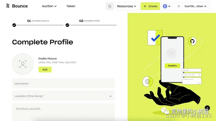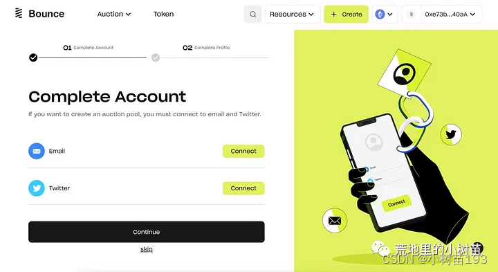 创建帐户后,您将完成您的 Bounce 个人资料。如果你想稍后完成播种,你可以点击跳过。