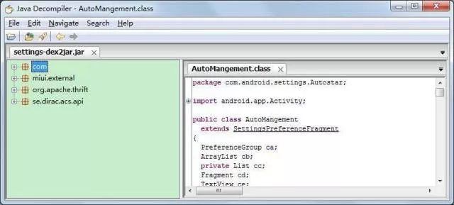 说一个小插曲:文章里看起来还算顺畅,但是实际操作的时候各种艰难险阻。问题重重。在APK导出系统设置程序这里浪费了不少时间,一直天真的认为系统的apk也能直接导出来反编译的。结果是压根不知道odex优化了。(什么你也不知道odex优化?说明你没有看我前面章节讲到的东西。)
