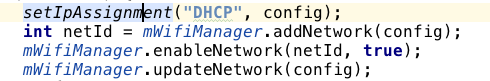 这个需求很普通很正常吧?没错,我也是这样想的。但是呢,不久你就会发现部分小米高版本机型切换wifi的API调用了不起作用。我们来看一眼代码。