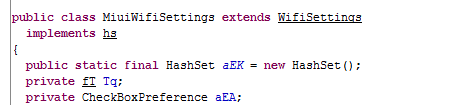 可以发现里面比之前那层壳里的内容丰富多了,还记得我们之前分析过那里不是Activity直接展示的而用了fragment我们搜索一下MiuiWifiSettings。果然存在这里。