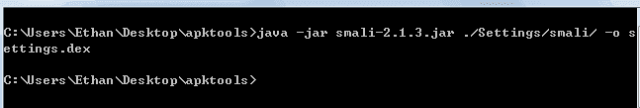 命令:java -jar smali-2.1.3.jar ./Settings/smali/ -o setting.dex