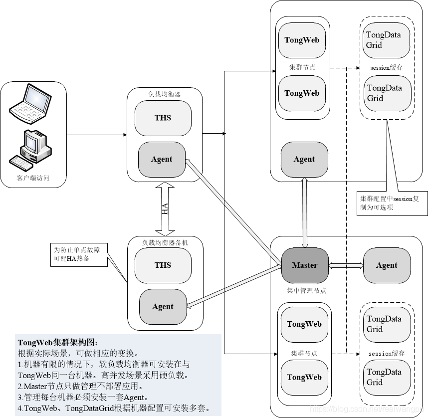 - 集群中负载设备、TongWeb、TongDataGrid可以任意增加节点,无启动顺序要求。