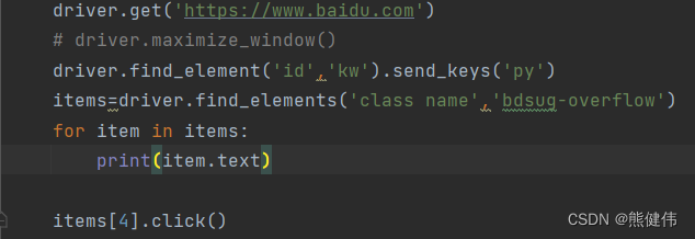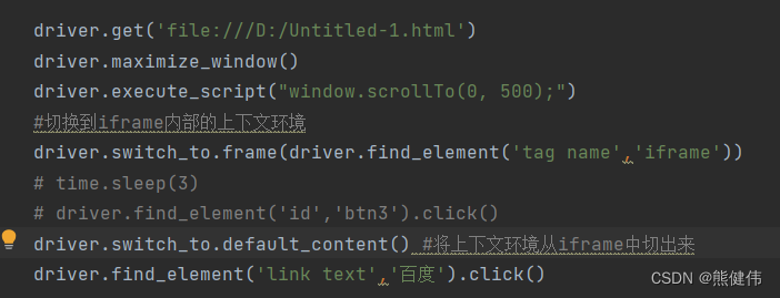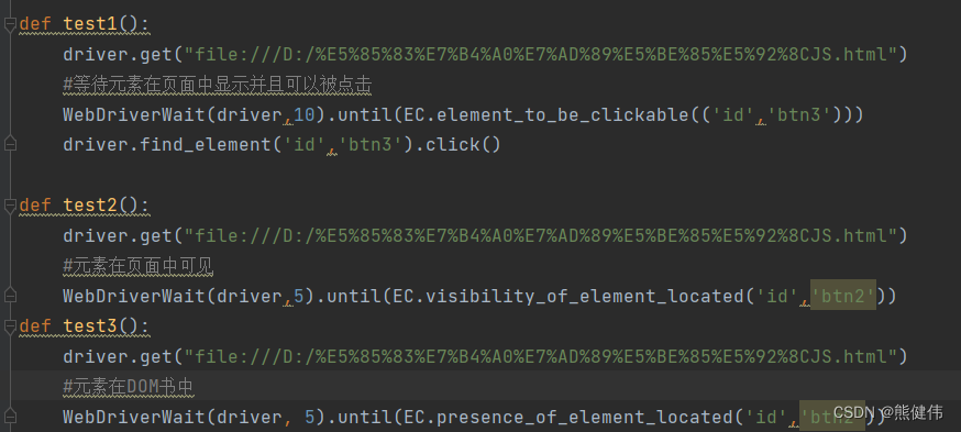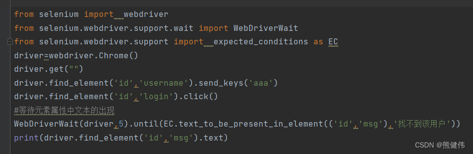 设置一次后(隐式等待只需要设置一次),全局有效,在元素没有出现时最多只等待指定时间,但如果在等待时间内,什么时候元素出现什么时候停止等待 driver.implicitly_wait(30)