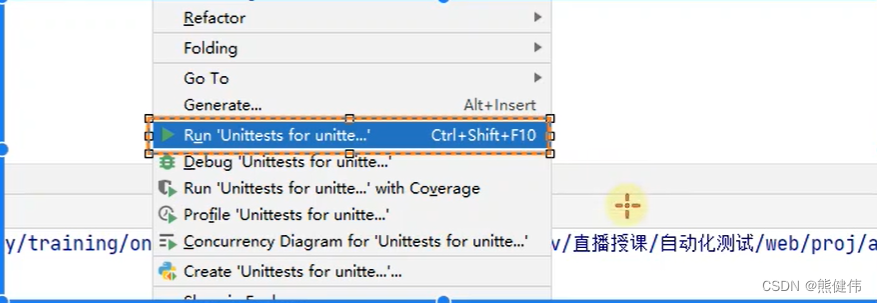 凡是显示Run 'Unittests for...'这种菜单,就表示以pycharm内置的unittest模块来运行文件