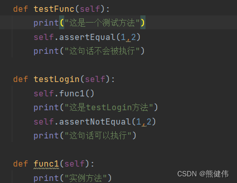 3.所有测试方法必须以test开头。测试方法会在运行时自动被调用