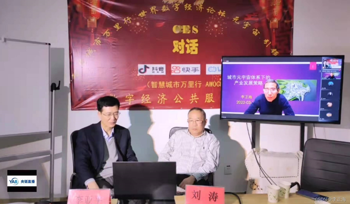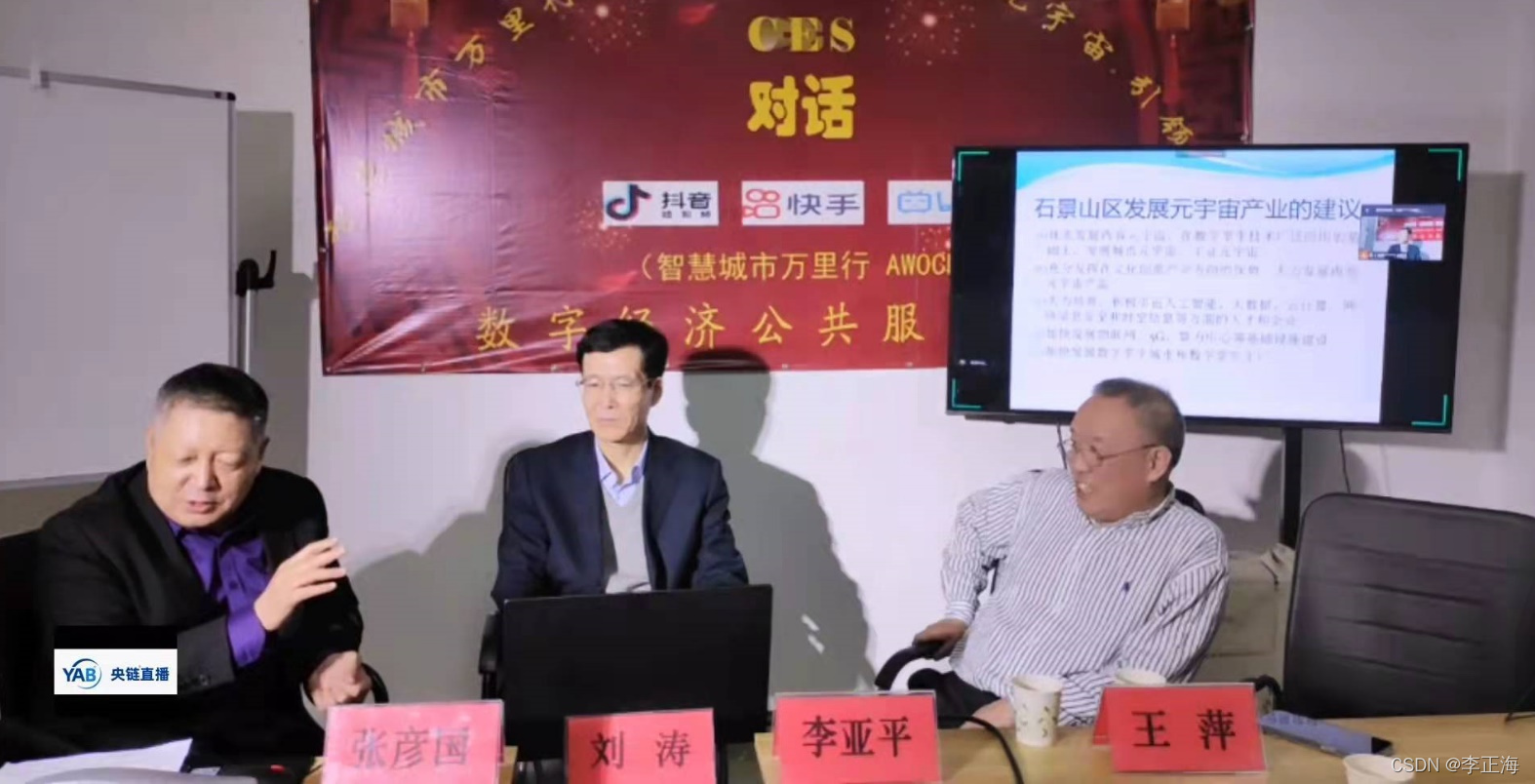 中国移动通信联合会元宇宙产业委员会联席秘书长、北京金山顶尖科技股份有限公司元宇宙研究院院长李正海组织百城万项.石景山元宇宙发展暨工业元宇宙三人行直播第四期活动并做《城市元宇宙体系下的产业发展策略》