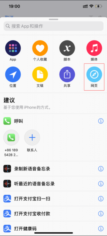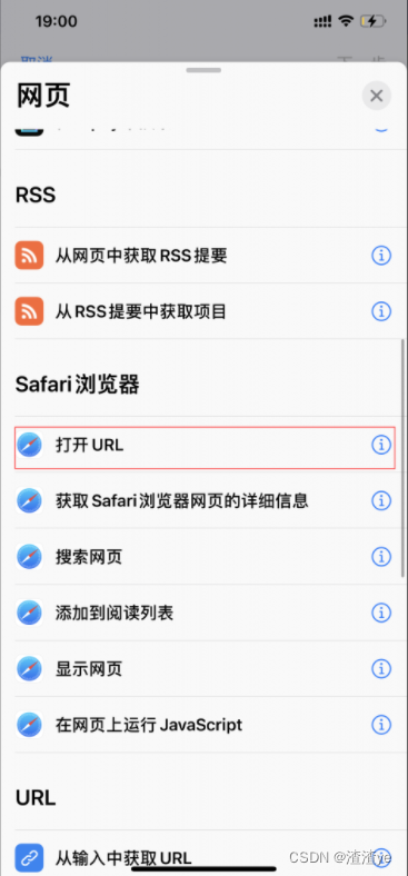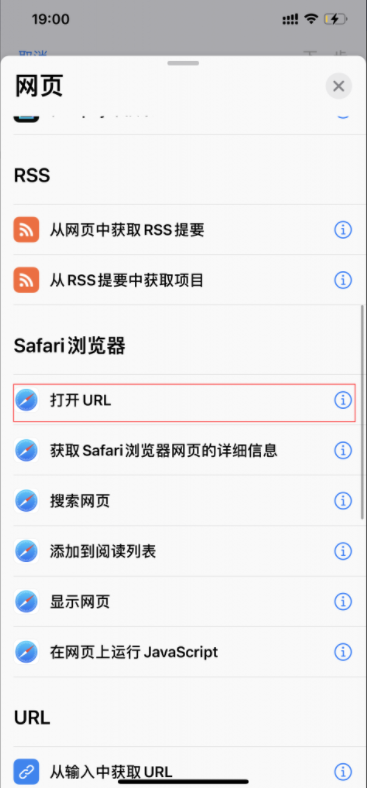 点击添加操作,然后找到“网页”功能,并且选择“打开url”