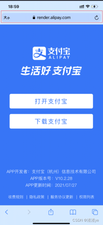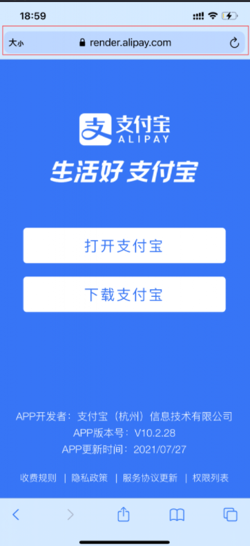把复制后的链接粘贴至任意浏览器进行访问,会弹出“是否打开支付宝”,选择否,如果自动进入支付宝,则切屏回到浏览器,之后全选并复制浏览器上方的链接