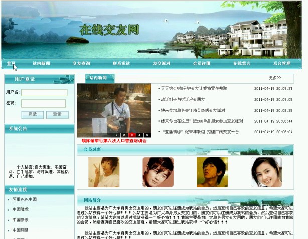 在线交友网站,满足了之间的点对点多媒体通信,为宽带网络上的个人客户们提供聊天功能。而交友系统拉近了人与人之间的距离,丰富人们的业余时间,为人们在网络中交友提供了便捷的渠道。