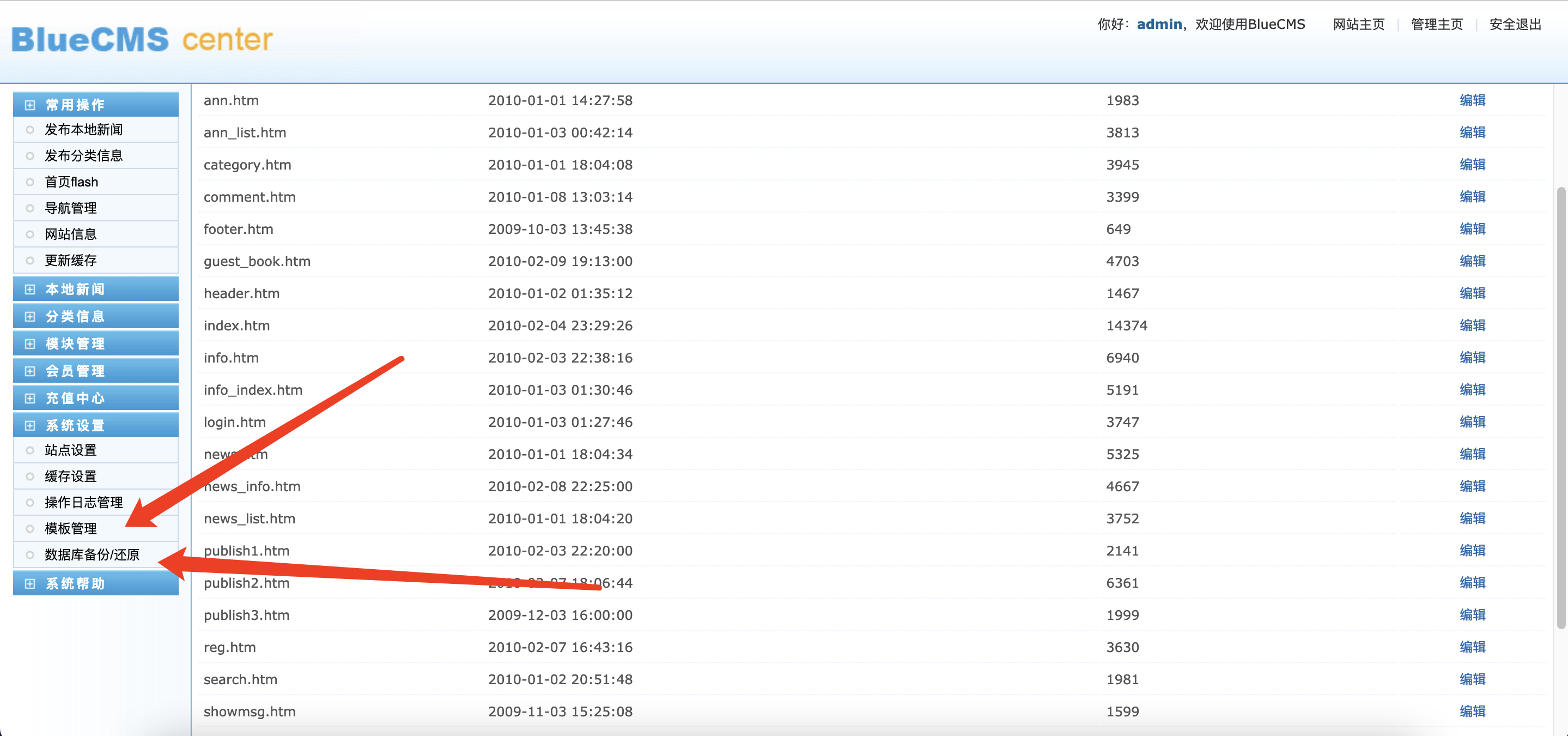 系统设置里面看见了一个 数据库备份 和模板管理