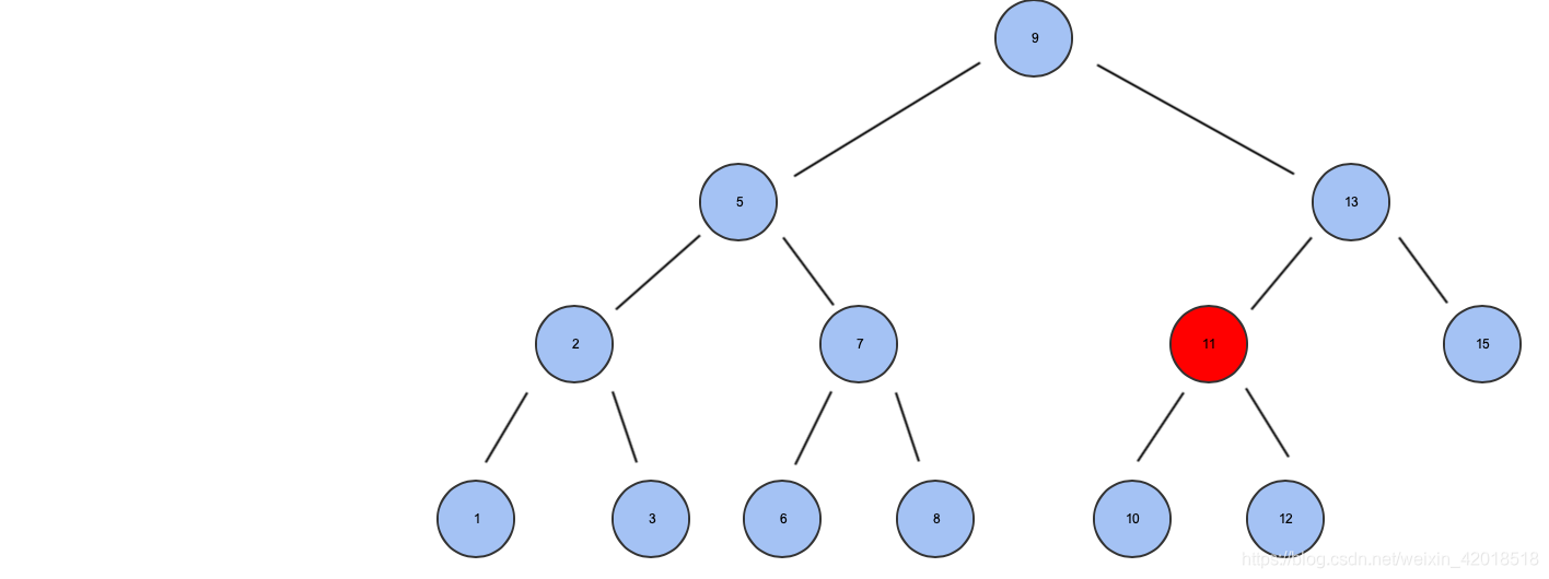 下面我们再来说一说 B-树删除的过程。同样只举一个典型例子,删除元素 11。