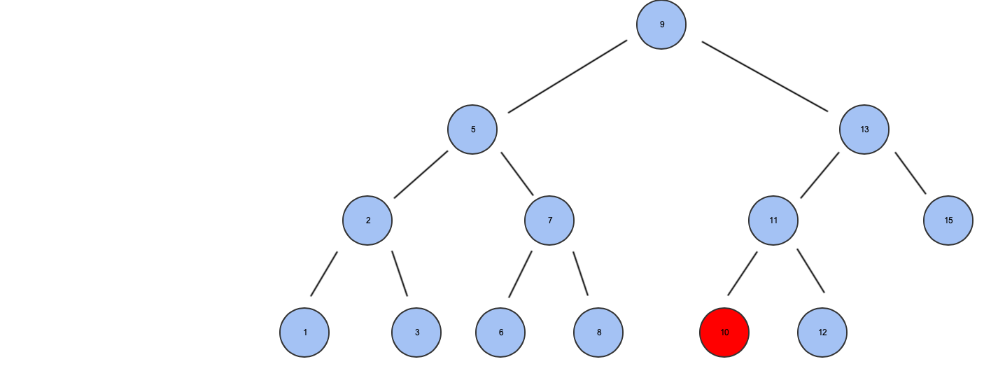 如果我们利用二叉查找树作为索引结构,情形是什么样呢?假设树的高度是 4,查找的值是 10,那么流程如下: