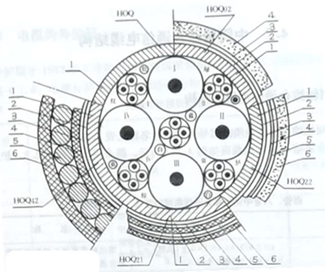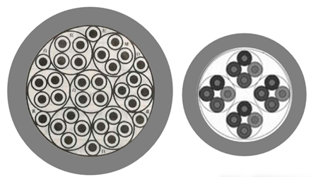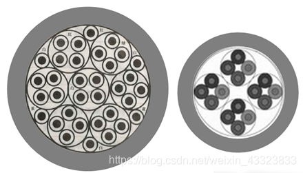 1976年,中国设计制造的1800路4管中同轴电缆在北京、上海、杭州间敷设成功并投入使用。4管中同轴电缆的截面如下图所示,电缆的外径约有小臂那么粗。
