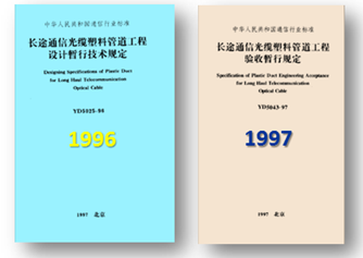 随后,邮电部在1996年和1997年发布了《长途通信光缆塑料管道工程设计暂行技术规定》和《长途通信光缆塑料管道工程验收暂行规定》。