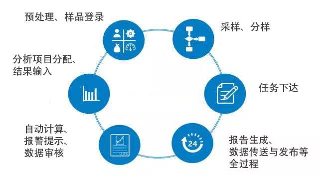 分析业务流程,包括任务下达、采样、分样、预处理、样品登录、分析项目分配、结果输入(自动采集与手工录入)、自动计算、报警提示、数据审核(多级审核)、报告生成、数据传送与发布等全过程。