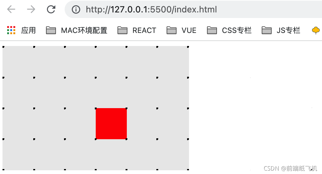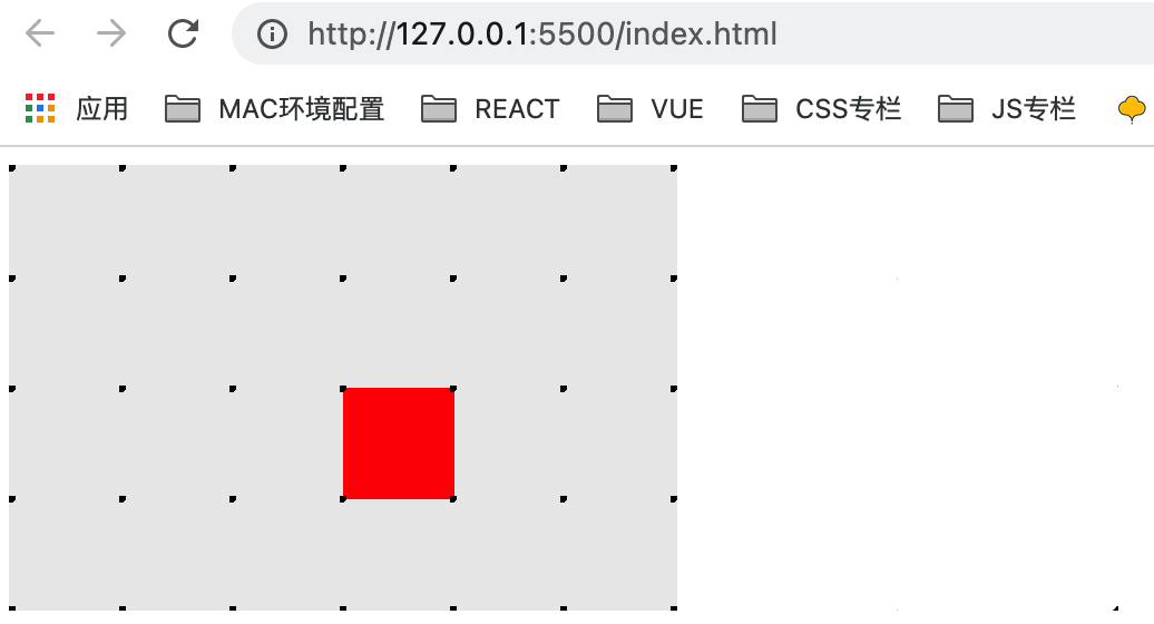 </body></html><style>.parent {background: #eaeaea;width: 300px;height: 200px;}.child {display: inline-block;background: red;width: 50px;height: 50px;margin-top: 50%;margin-left: 50%;}.parent {position: relative;}.grandparent {position: relative;}.grandparent::before {content: "";position: absolute;top: 0;left: 0;right: 0;bottom: 0;z-index: 99;background: radial-gradient(circle at 1px 1px, #000 2px, transparent 0);background-size: 49.5px 49.5px;}