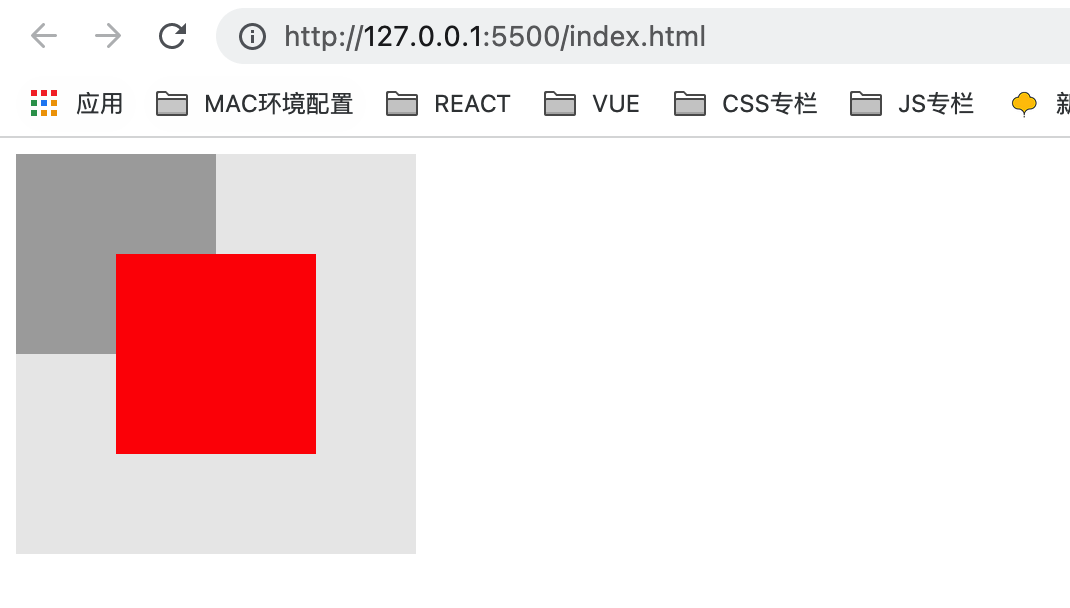 </body></html><style>.grandparent {position: relative;width: 200px;height: 200px;background: #eaeaea;}.parent {width: 100px;height: 100px;background: #aaa;}.child {position: absolute;width: 50%;height: 50%;top: 25%;left: 25%;background: red;}