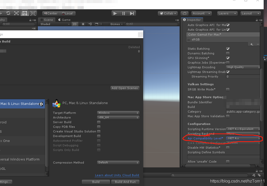 这里有一点需要注意,需要将PlayerSettings中Other Settings中Api Compatibility Level改为.NET 4.x,不然会找不到该引用。