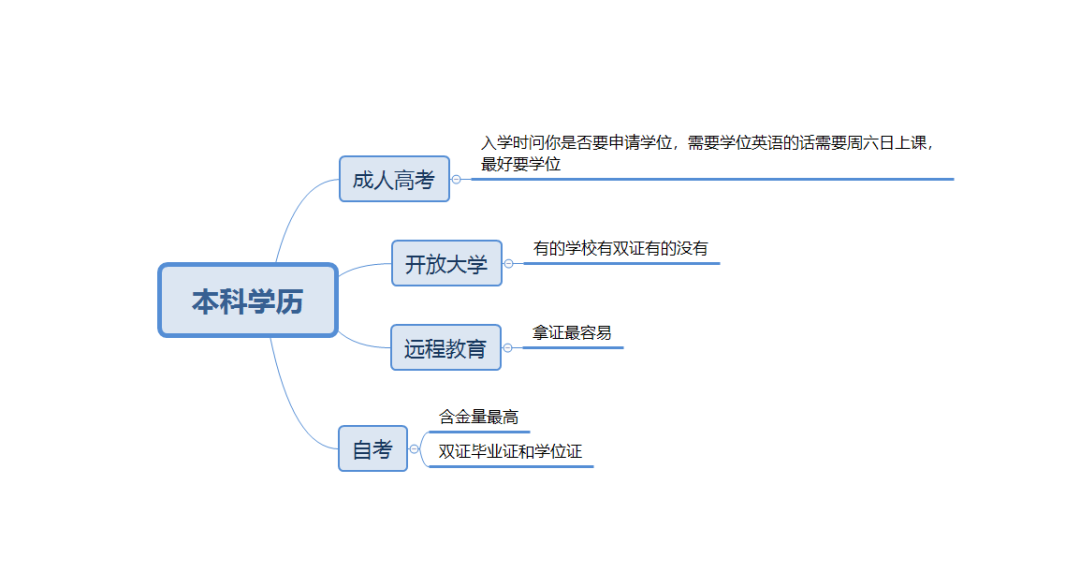 第二点:双证很重要!!毕业证和学位证,以上学历均属于第二学历也就是说不是通过高考拿的学历,如果你是专科想要选择本科学历以上都可以选择,但是目前来说,在教育机构层面能拿到双证的太少了,基本都是智能拿毕业证,因为学位证很难搞,因为如果你28岁想回老家考公务员,一般都要求你有学士学位证书的。毕业证代表你接受过本科教育,学位证代表你有本科水平。