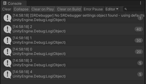 {void Start(){for (int i = 0; i < 100; i++){//int value = GetRandomRate(new float[5] { 0.2f, 0.3f, 0.4f, 0.05f, 0.05f });int value = GetRateNoRandom();Debug.Log(value);}}// 约等于概率int GetRandomRate(float[] probs){float total = 0;foreach (float elem in probs){total += elem;}float randomPoint = Random.value * total;for (int i = 0; i < probs.Length; i++){if (randomPoint < probs[i]){return i;}else{randomPoint -= probs[i];}}return probs.Length - 1;}// 数组值加起来不一定等于100,但是一般规范100 就行,要求整数int[] NoRandomArr;// 先初始化出来存储起来List RandomList ;void InitRandomListValue(){NoRandomArr = new int[5] {20, 30, 40, 5, 5 };RandomList = new List();for (int i = 0; i < NoRandomArr.Length; i++){for (int j = 0; j < NoRandomArr[i]; j++){RandomList.Add(i);}}}// 稳定概率 例如设置了0的概率是10 ,那么100次一定有10次,不多不少int GetRateNoRandom(){if (RandomList == null ||RandomList.Count == 0) InitRandomListValue();int listIndex = Random.Range(0, RandomList.Count - 1);int listValue = RandomList[listIndex];RandomList.RemoveAt(listIndex);return listValue;}