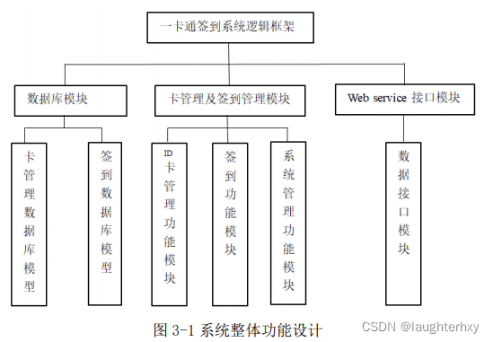 分析:由于设计到了一卡通所以对一卡通这个实体还有相关处理,还有一卡通管理系统、签到系统