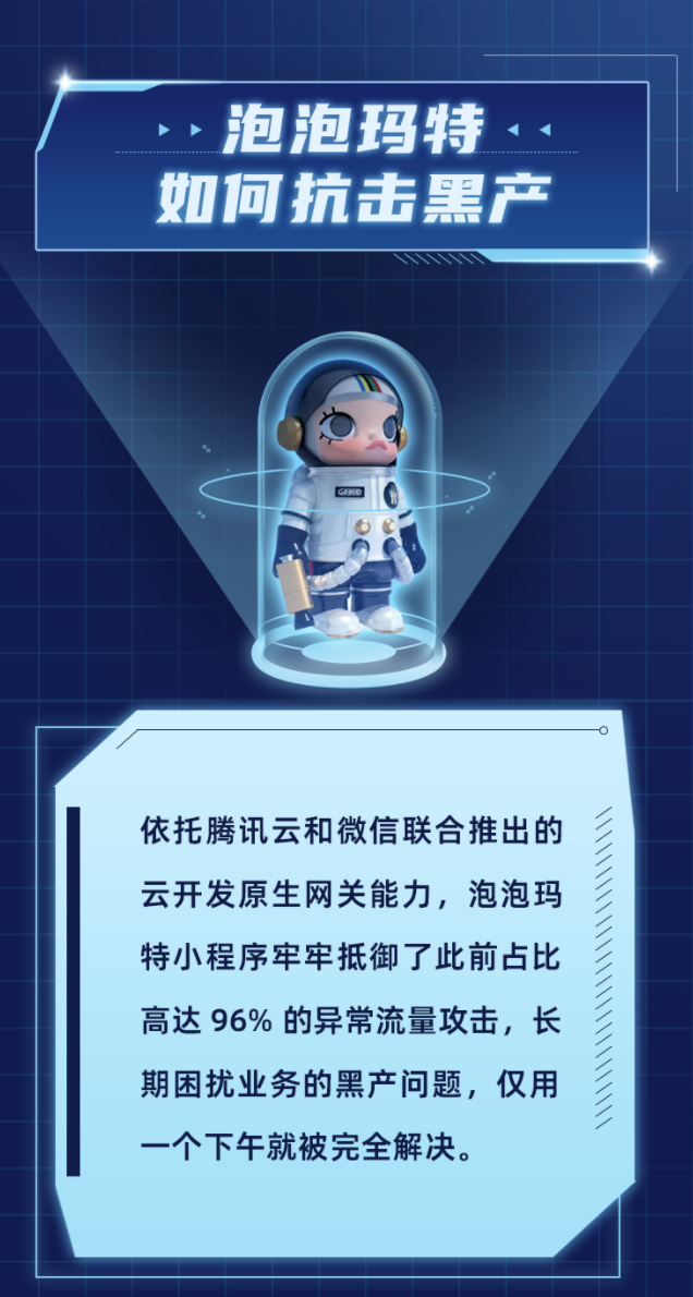 泡泡玛特小程序接入后,一举挡住了此前占比高达96%的异常流量,困扰多年的灰产问题得以解决。
