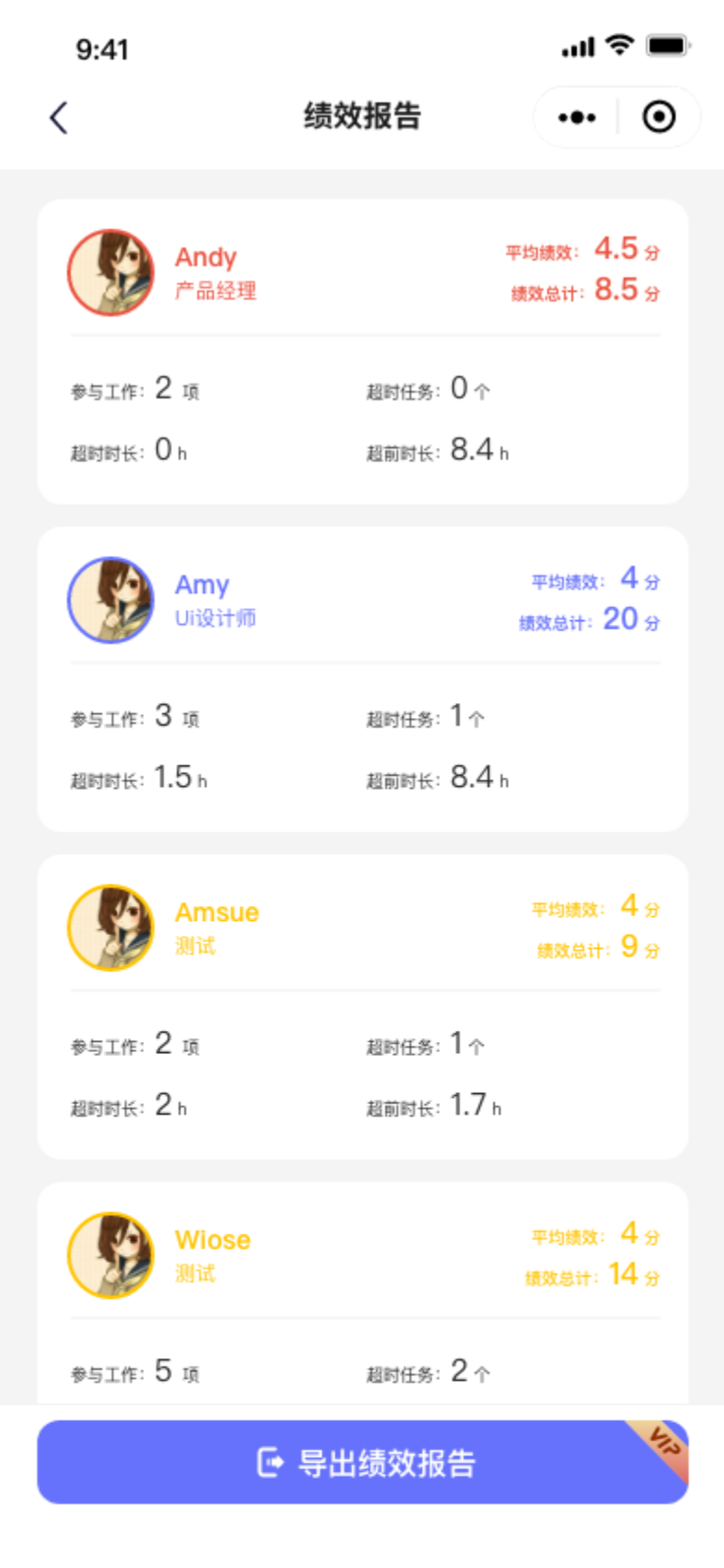 在任务执行人完成某项工作后,对应的任务审核人会及时收到审核任务通知,审核人可对该执行人的工作表现做及时的反馈。项目结束后系统会自动统计出项目成员的工作表现和绩效结果。