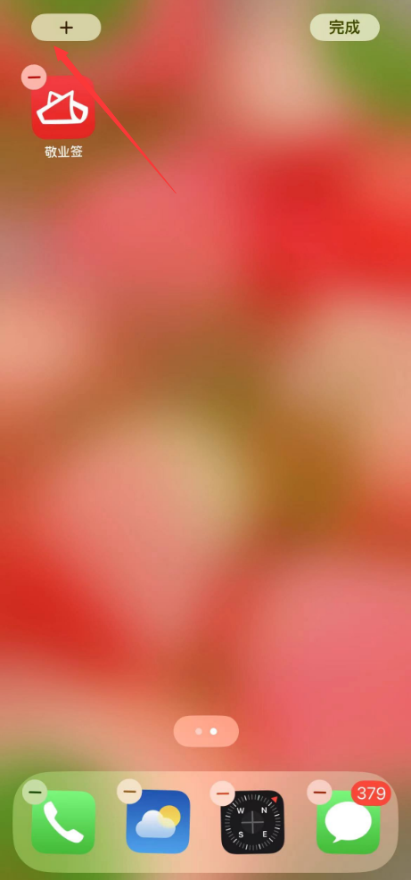 首先在手机屏幕空白处长按,待左上角出现“+”后点击进入。