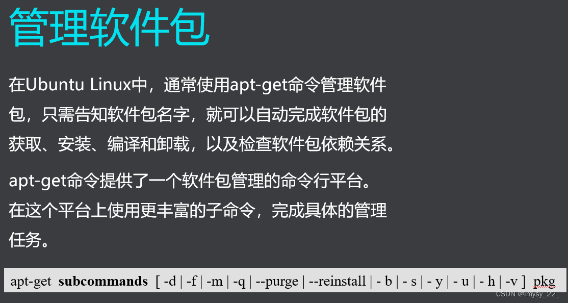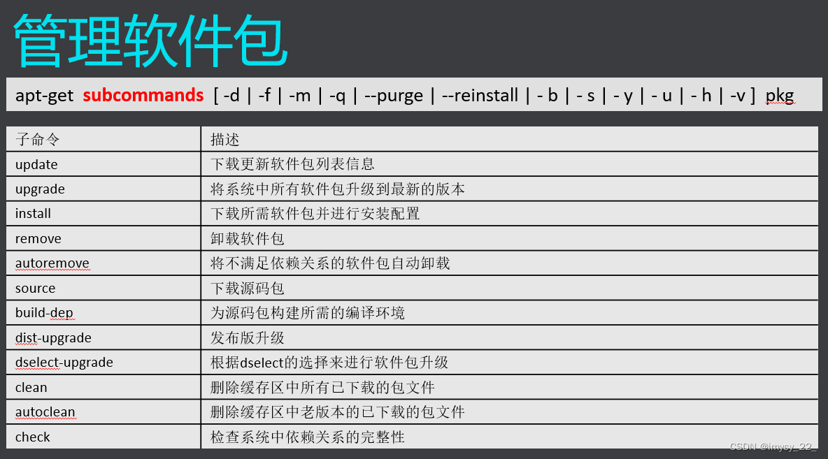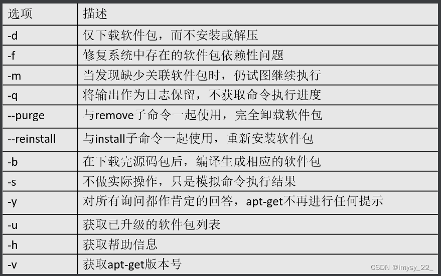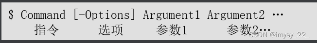 通常一条命令包含三个要素:命令名称、选项、参数。命令名称是必须的,选项和参数都可能是可选项。命令格式如图所示:
