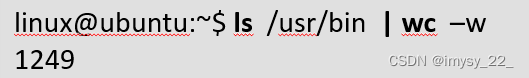 以上操作中,借助管道“|”,将ls的输出直接作为wc命令的输入。使用管道可以巧妙的将一些命令联合使用,得到单个命令所无法实现的效果。例如使用以上的命令组合,得到的是/usr/bin目录下文件的个数。