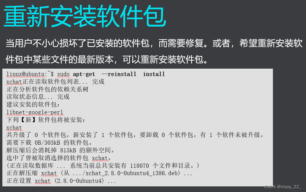 echo命令用于在标准输出——显示器上显示一段文字,一般起到提示作用。echo命令的一般语法格式为: