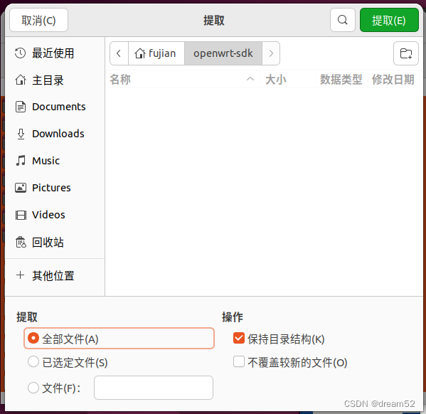 点击提取,选中事先在主目录下建好的openwrt-sdk