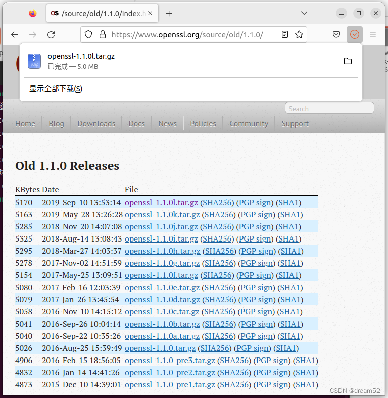 接着下载openssl, 下载这个就不用git了,太慢了,直接浏览器下载