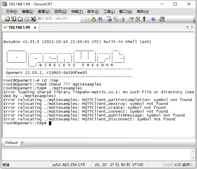 执行mipsel-openwrt-linux-gcc -o mqttexamples mqttexamples.c -lpaho-mqtt3c