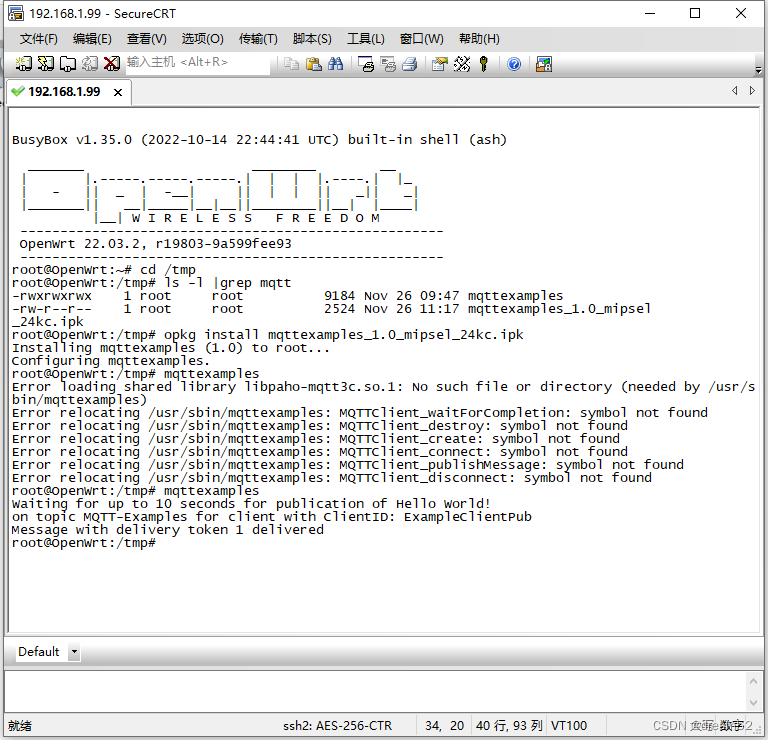 上传至OpenWrt路由器/tmp目录下去运行(路由器已安装MQTT服务器(mosquitto),并允许匿名登陆)