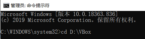 在VBox目录下输入下边这条指令:(不用加引号,此处引号是为了方便观看)