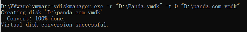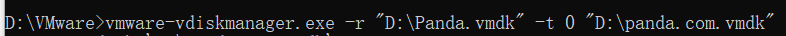 vmware-vdiskmanager.exe -r "刚才生成的vmdk文件" -t 0 ".com.vmdk文件"