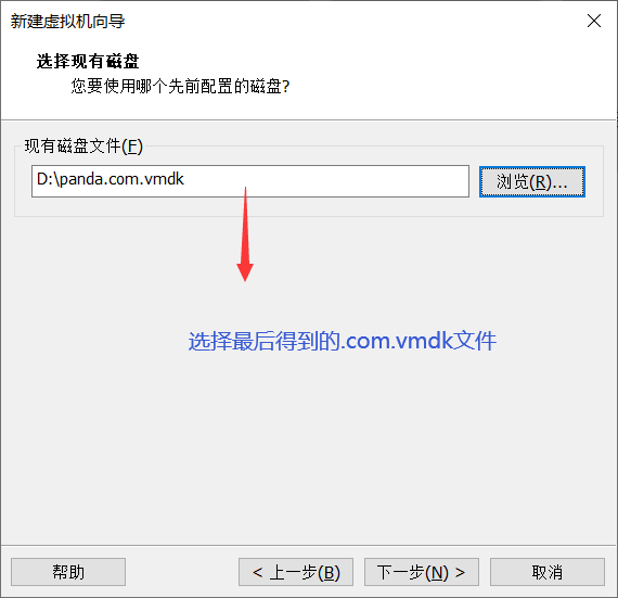 在VM目录中输入以下指令,得到一个.com.vmdk文件:(此处是要加引号的)